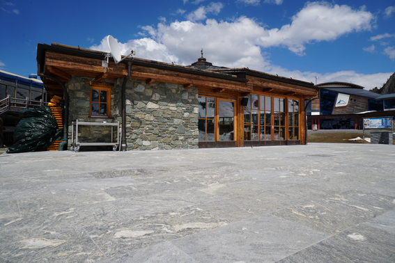 The new sun terrace of the Badener Hütte now radiates with a new shine – and the Austrian Alpine Association can rest assured that the covering will not be damaged any time soon. And one thing is for certain: it was an exciting project for everyone involved. When was the last time that building materials for a terrace renovation were transported by helicopter to an altitude of 2,600 metres and processed in the high alpine climate? The result is also impressive. The porphyr slabs fit in perfectly with the environment, and are now no longer exposed to the weather conditions without protection.