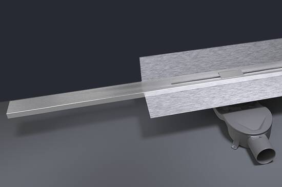 Ablängbare Edelstahlauflage mit integriertem Gefälle und rückseitigem Vlies zum einfachen Verkleben (bis zu 400 mm)