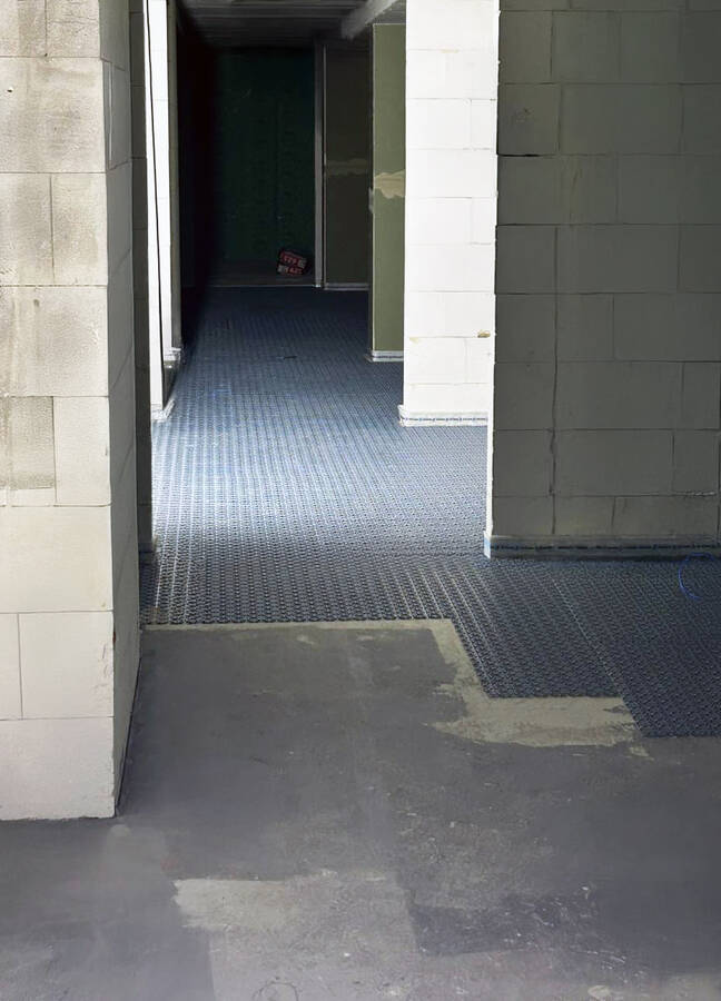 - Die Mattengeometrie verhindert, dass die Heizkabel knicken. Aufgrund ihrer offenen Struktur ermöglicht sie zudem ein schnelles Ausspachteln mit nur „einem Wisch“.