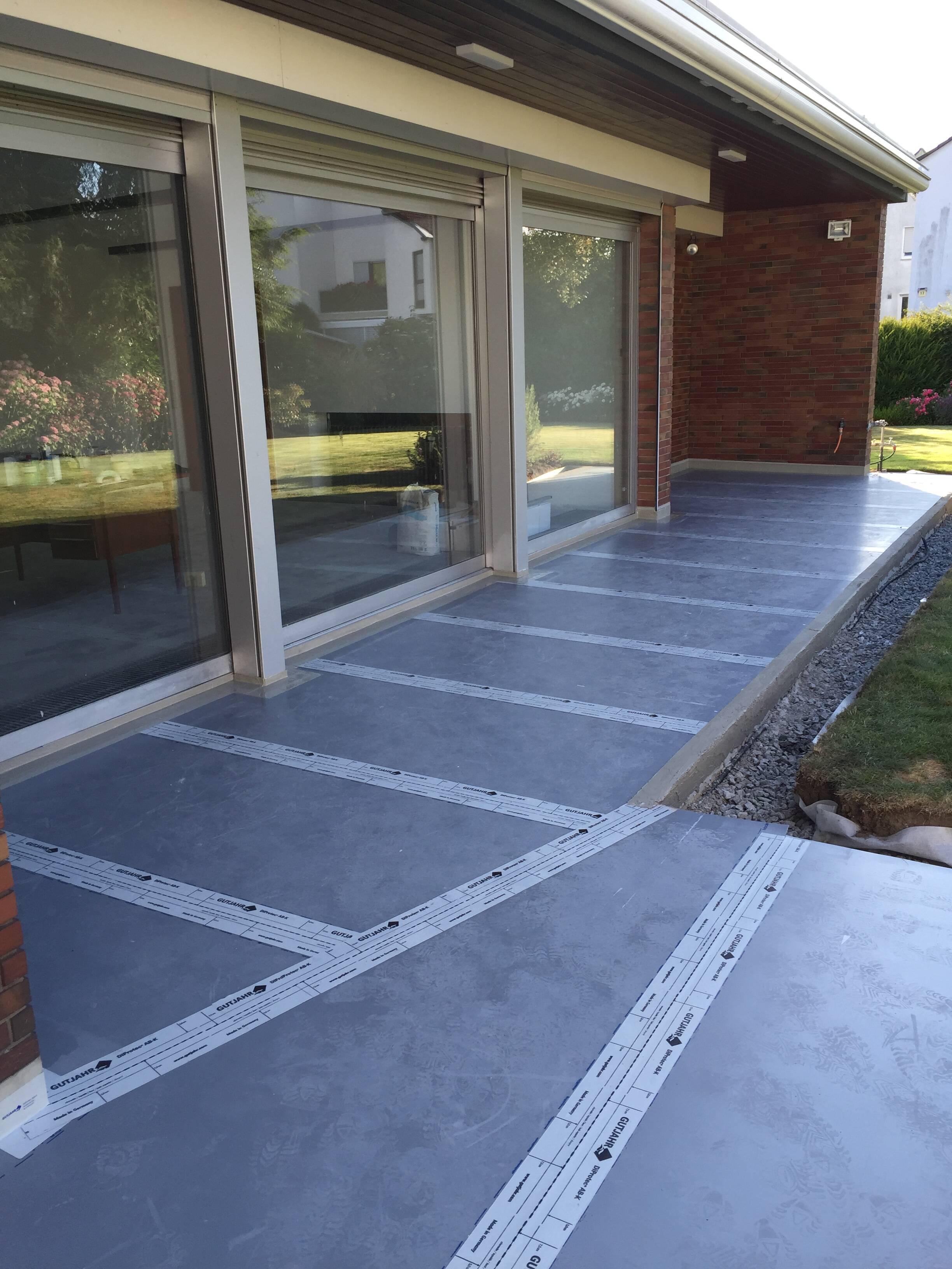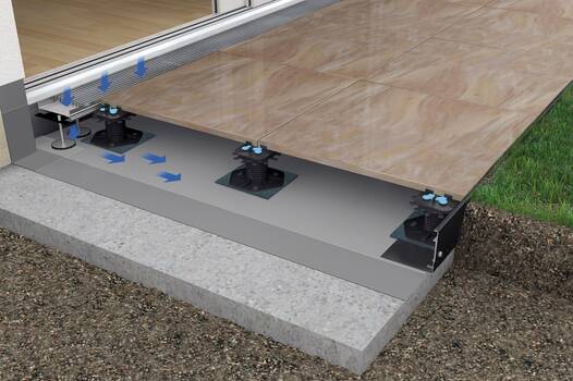 Ein weiterer wichtiger Punkt für Fachhandwerker ist der Systemgedanke, den Gutjahr auch bei DiProtec SDB verfolgt hat. Die Bahn kann mit allen Entwässerungssystemen von Gutjahr – Drainagen, Stelzlager und Rahmensystem – eingesetzt werden. So ist auch Andreas Finkel auf die Bahn aufmerksam geworden. „Wir als Gartenbauer haben mit den unterschiedlichsten Untergründen zu tun. Immer wieder sind wir mit niedrigen Aufbauhöhen, besonders im Bereich von Terrassen, konfrontiert. Hierfür haben wir erstmals die Schnelldichtbahnen in Verbindung mit dem TerraMaxx PF-System eingesetzt. Das hat uns nach der ersten Baustelle überzeugt, sodass wir es inzwischen regelmäßig verbauen und von anderen Kollegen um Rat gefragt werden.“ Fliesenleger Torsten Gräff sieht das ähnlich. „Ich schätze den Systemgedanken von Produkten, die aufeinander abgestimmt sind.“