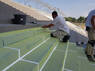 Auch das Problem der neuen Elektroheizung wurde gelöst – mit einer Sonderkonstruktion. Die Heizungsschleifen liegen jetzt auf einer Gittermatte und mussten ganz vom Drainmörtel MorTec DRAIN umschlossen werden, damit sie nicht durchbrennen. Außerdem durfte das Trägergewebe die Drainwasserableitung im Drainmörtel nicht verschließen und nicht trennend auf die Drainmörteleinbettung wirken. Diese musste weiterhin einen einwandfreien Haftkontakt zur Belagsrückseite gewährleisten. „Für Außenbereichsheizungen mit angemörtelten Bodenplatten existieren keine Normen. Deshalb mussten wir überprüfen, inwieweit Regelungen für Flächenheizungen im Innenbereich mit der geplanten Ausführung im Außenbereich konform sind. Dazu waren wir in ständigem Kontakt mit dem planenden Bauingenieur und dem Elektroheizflächenhersteller“, erklärt Gutjahr-Experte Pier Petzinger.
