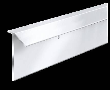 Das Sockelprofil besteht aus wertbeständigem Aluminium und wird mit Dübeln im Untergrund verankert. Dadurch ist es auf allen Untergründen einsetzbar, auch wenn sie minderfest sind. Durch den großen Klebeschenkel lassen sich die DiProtec-Abdichtungsbänder sicher anschließen. Die integrierte Profilnase schützt vor Wasser: Sie sorgt dafür, dass kein Wasser hinter die Abdichtung gelangt und Schäden im Innenraum verursacht. Die obere Tropfkante verhindert die Einlagerung von Fassadenwasser im Kleberbett – eine häufige Ursache, wenn Sockelfliesen locker sind oder abfallen.