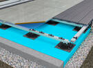 - Mit Hilfe von Platten- oder Trockenstelzlagern kann die Konstruktion von allen Seiten schnell und einfach in der Höhe verstellt oder ein Gefälle eingerichtet werden.
