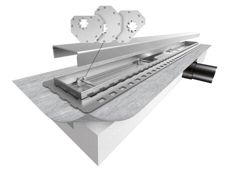 - Der Drainrahmen lässt sich in alle Richtungen um bis zu 5 mm verschieben. Dadurch können Verarbeiter die Duschrinne viel einfacher an das Fliesenrastermaß anpassen.