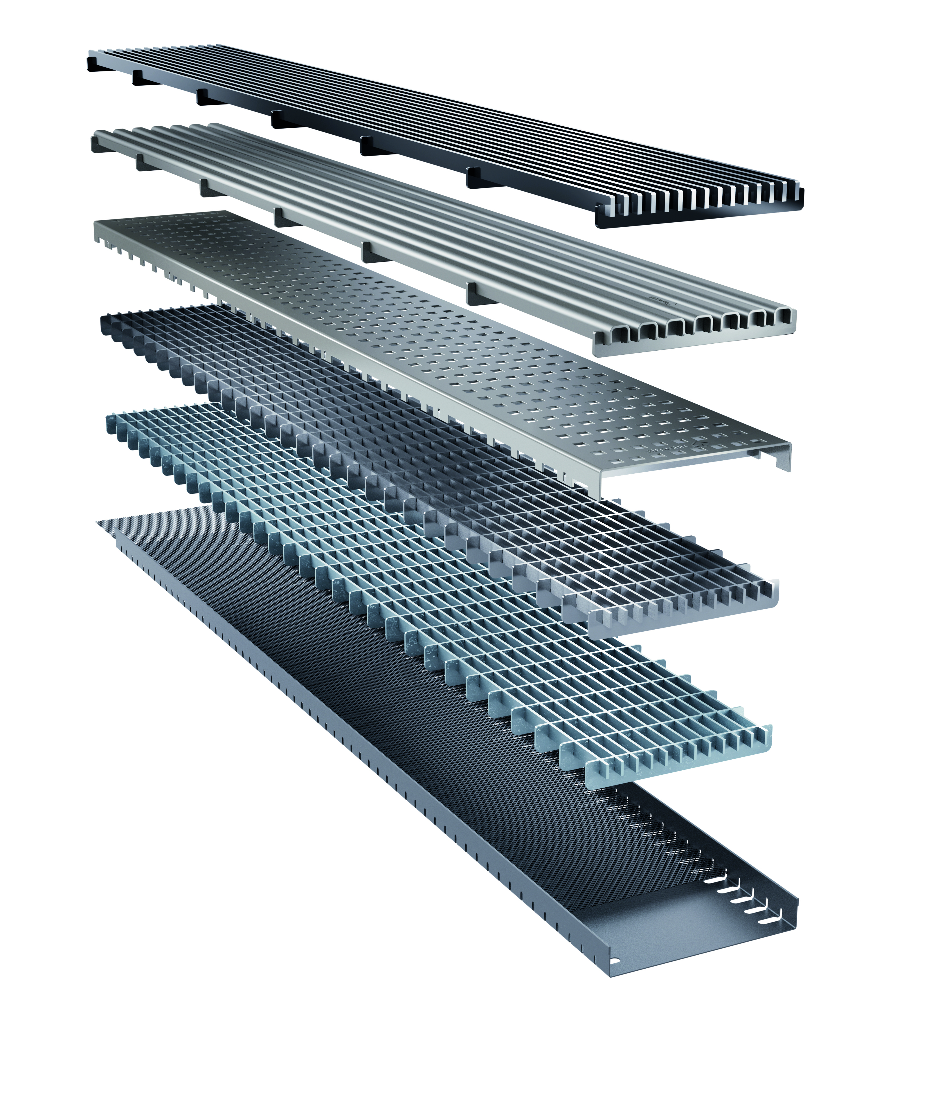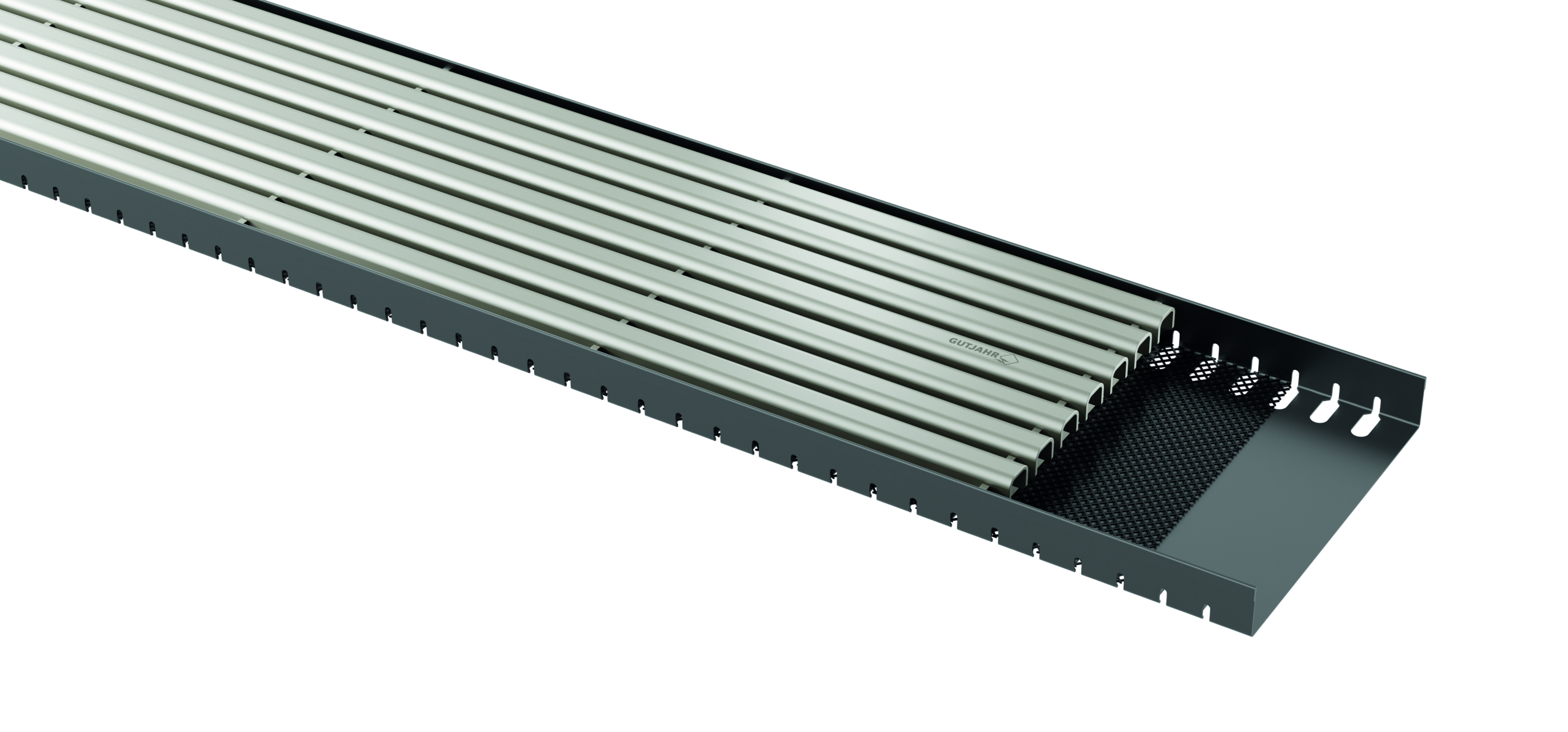 Gerade im Außenbereich ist Korrosionsschutz entscheidend. Während viele marktübliche Drainrinnen aus bandverzinktem Stahlblech bestehen und nachträglich geschnitten werden – mit entsprechend rostanfälligen Schnittkanten –, setzt Gutjahr auf ein langlebiges Konzept: Der Rinnenkanal von AquaDrain VARIO+ ist feuerverzinkt, verfügt über eine besonders hohe Zinkauflage und wird nach dem Stanzen zusätzlich pulverbeschichtet. Das schützt die Schnitt- und Stanzkanten dauerhaft vor Korrosion – auch bei hoher Belastung durch Feuchtigkeit.