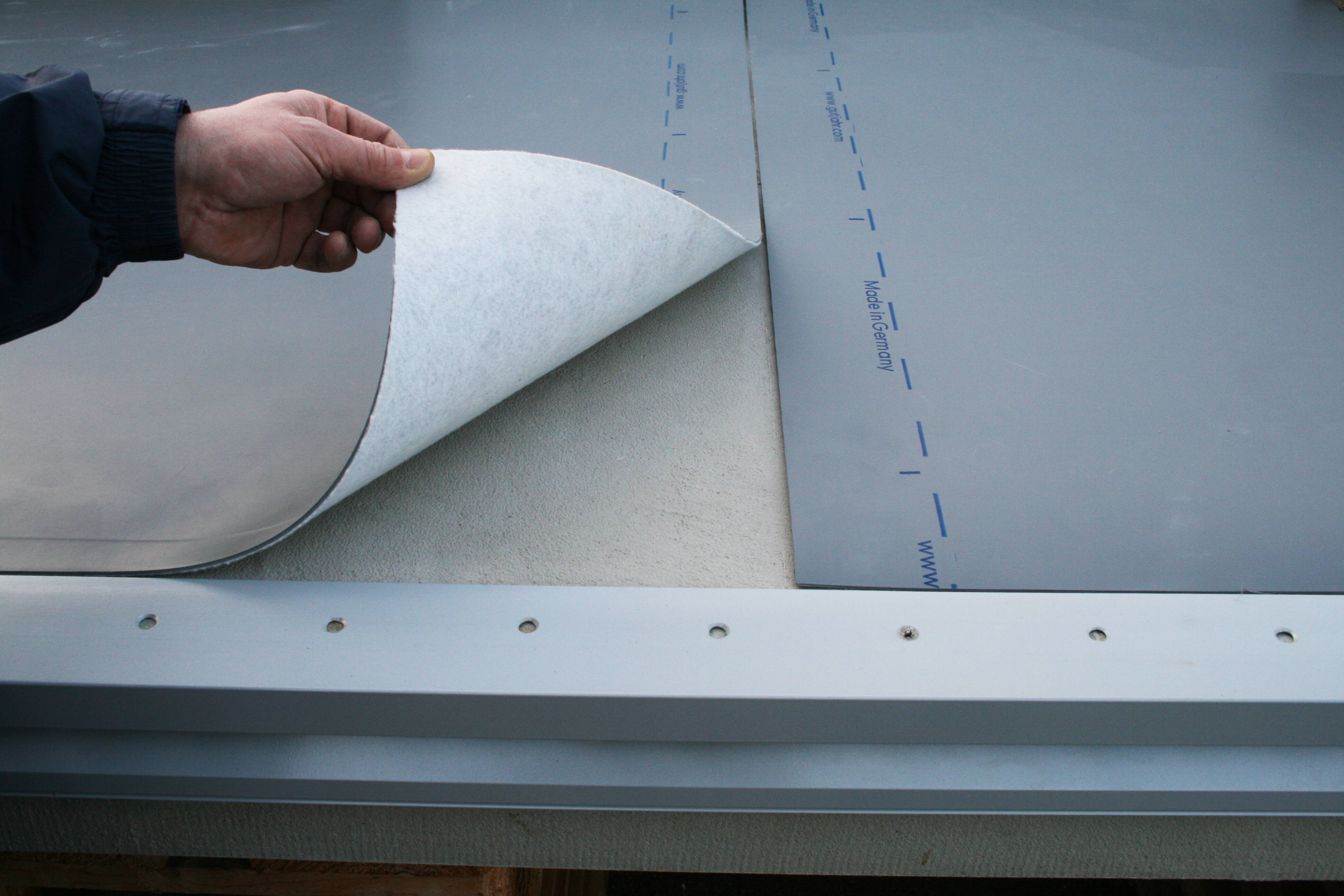 DiProtec SDB wird ohne aufwändige Vorbereitung oder Wartezeit lose auf dem Untergrund verlegt. Sie ist sofort regenfest. Im Gegensatz zu mineralischen Dichtschlämmen oder Flüssigabdichtungen entfallen zudem Grundierungsarbeiten. Dank der definierten Schichtstärke und den selbstklebenden System-Dichtbändern wird eine einfache und sichere Verarbeitung gewährleistet. Durch das unterseitige Dampfdruckausgleichsvlies ist die Gutjahr-Schnelldichtbahn auch auf feuchten Untergründen oder Altbelägen einsetzbar.