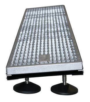 Genau für diesen Einsatzbereich hat Gutjahr das Komplettsystem aus dem Spezialdrainrost AquaDrain BF-Flex plus Hochleistungsflächendrainage entwickelt. Das Drainrostsystem wird vor der Balkon- oder Terrassentür eingebaut und kann schräg – als Rampe – gesetzt werden. Dabei entspricht es den Flachdachrichtlinien und den Regeln für barrierefreies Bauen. Denn die nach unten offenen Roste ergeben eine wannenbildende Konstruktion. Die Flächendrainage leitet das Wasser effektiv ab. „Untersuchungen zum Wasserableitvermögen zeigen, dass Kies und Splitt zu langsam entwässern. Das gleiche gilt für geschlitzte Kastenrinnen“, erklärt Walter Gutjahr. Als einziges Unternehmen hat Gutjahr das Wasserableitvermögen seines Komplettsystems durch unabhängige Institute prüfen lassen. Das Ergebnis: Es entwässert bis zu 6 mal besser als eine Kombination aus Kastenrinne und Kiesbett. Zudem bietet das Unternehmen als einziger Hersteller eine 6-jährige Funktionsgarantie nicht nur auf die Komponenten des Systems, sondern auch auf ein dauerhaft hohes Wasserableitvermögen von mindestens 1,1 l/m*s bei 1% Gefälle. Über Gutjahr