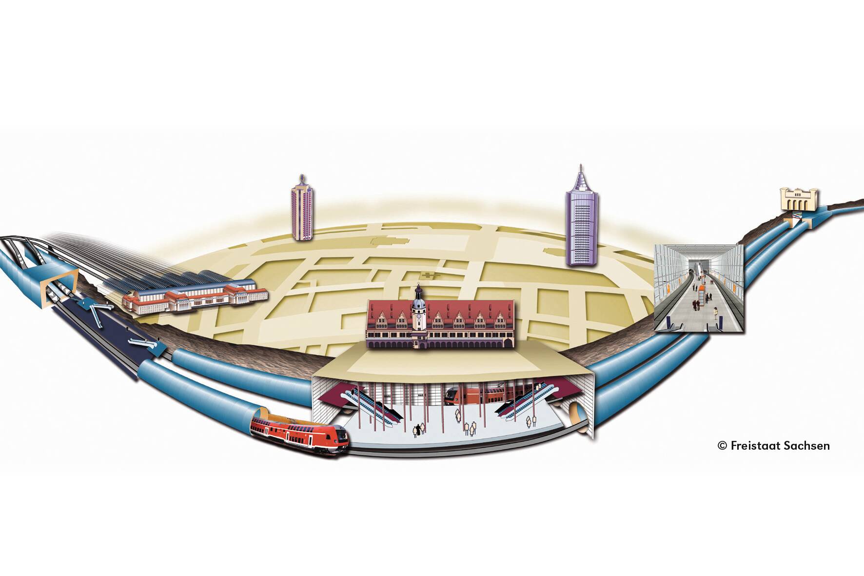 Der City-Tunnel Leipzig ist das Herzstück des mitteldeutschen S-Bahn-Netzes: Er bietet eine direkte Verbindung zwischen dem Südraum der Stadt und dem Hauptbahnhof im nördlichen Stadtzentrum. Auf diese Weise macht der City-Tunnel Leipzig den gesamten regionalen Zugverkehr schneller, effizienter und komfortabler. Der City-Tunnel Leipzig besteht aus zwei Tunnelröhren mit einer Länge von 4,010 Kilometern (inklusive Rampen) sowie vier unterirdischen Stationen. Die Bauzeit betrug 10 Jahre. Bauherren sind der Freistaat Sachsen und die Deutsche Bahn AG. Über Gutjahr