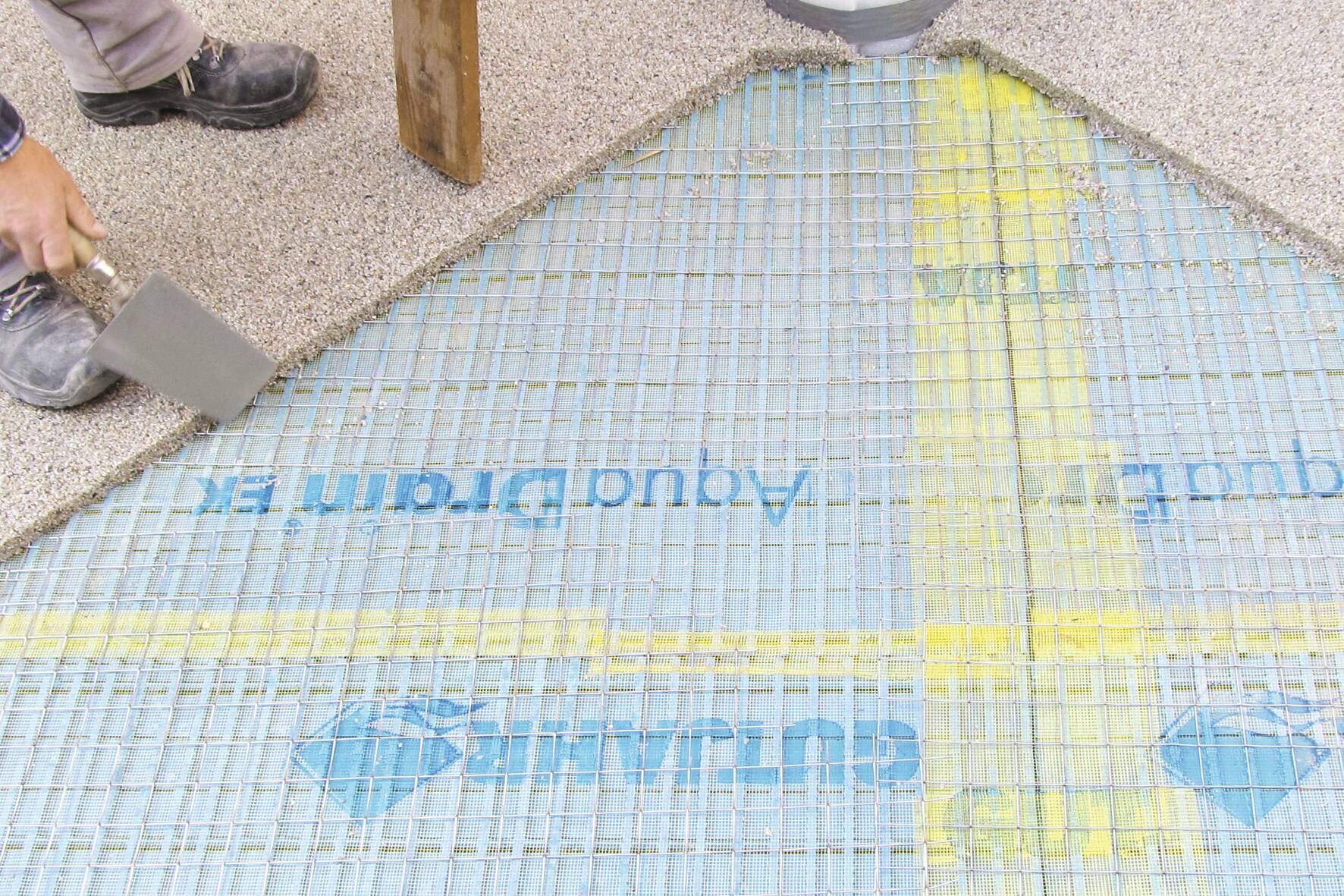 Um die historische Substanz des Treppenabgangs vor Schäden zu schützen, entschieden die Bauherren Freistaat Sachsen und Deutsche Bahn AG: Der hochwertige Granit sollte auf Drainagesystemen verlegt werden. „Granit reagiert wie viele andere Natursteine auch empfindlich auf Stauwasser. Deshalb empfehlen die gängigen Merkblätter und Naturstein-Experten seit Jahren, Naturstein auf Drain- oder Einkornmörtel plus einer kapillarpassiven Drainagematte zu verlegen. Drainmörtel alleine kann nicht vor Schäden schützen“, erklärt Gutjahr-Geschäftsführer Ralph Johann. Der Grund: Drainmörtel führt das Wasser zwar schnell von oben nach unten ab. Eine Untersuchung der Materialprüfanstalt Darmstadt zeigt jedoch, dass er alleine kapillaraktiv ist. Das bedeutet: Wenn sich Sickerwasser auf der Abdichtung staut, zum Beispiel an den Überlappungen von Bahnenabdichtungen, wandert das Wasser durch den Drainmmörtel an die Oberfläche zurück. So entstehen leicht Ausblühungen, Feuchteflecken oder auch Kalkfahnen bei Treppenstufen – der Belag wird zum Sanierungsfall. Doppelte Sicherheit mit Flächen- und Treppendrainage