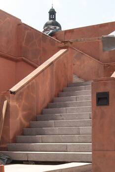 Vier unterirdische Stationen sowie die beiden Haltepunkte Leipzig Nord und Leipzig MDR liegen entlang des Tunnels. Alle Stationen wurden von namhaften Architekten nach funktionalen und ästhetischen Gesichtspunkten gestaltet. Wichtig waren dabei die schnelle Zugänglichkeit, Helligkeit und Transparenz – und jede Station erhielt ein ganz individuelles, ihrer Lage und Funktion entsprechendes Gesicht. Das zeigt sich auch beim Zugang am historischen Markt. Während in 22 Metern Tiefe zwei S-Bahnen direkt unter dem Marktplatz halten, wird der Eingang in die moderne Stationshalle von einem Art-Déco-Portal flankiert: das Original des ehemaligen Untergrundmessehauses aus dem Jahr 1925, der weltweit ersten unterirdischen Ausstellungshalle. Bei Baubeginn wurden die massiven Natursteinblöcke vollständig demontiert und anschließend denkmalgerecht restauriert. Die Fassade der Längswände besteht aus massiven Terrakottaplatten. Die Treppenstufen und Podeste ziert ein passender Granitbelag. Historischer Treppenaufgang – modern geschützt
