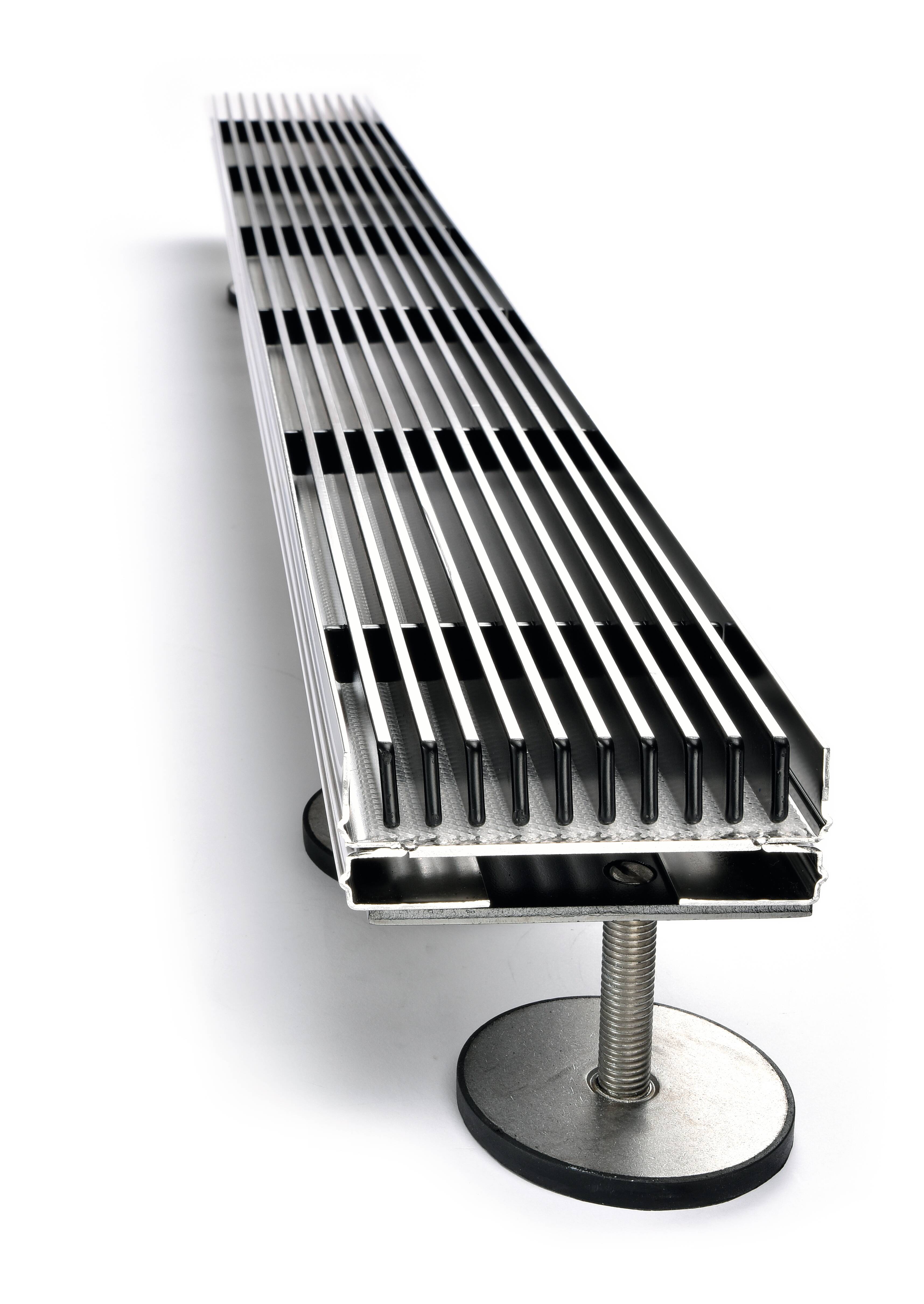 In der Architektur geht der Trend zu klaren, geraden Formen. Moderne Drainroste sorgen im Übergang zum Innenraum zwar für eine sichere Entwässerung im Türanschlussbereich. Doch die klassische Gitterrostoptik der Drainroste passt nicht immer zum Gestaltung von Balkon oder Terrasse – etwa bei hochwertigen Natursteinen oder großformatigen Fliesen. Gutjahr bietet deshalb nicht nur Lösungen in Sonderformaten, sondern auch mit besonderen Design- und Materialveredelungen.