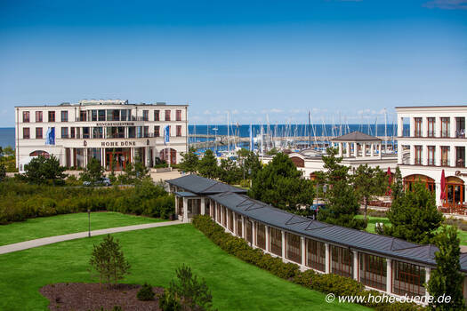 Die Yachthafenresidenz Hohe Düne liegt direkt am Ostseestrand in Rostock-Warnemünde. Als Yachting & SPA Resort umfasst die Anlage sowohl den Hotelbereich mit exklusiver Wellnessoase als auch einen eigenen Yachthafen mit direktem Zugang zum offenen Meer sowie ein perfekt ausgestattetes Kongresszentrum mit Blick auf die Warnowmündung und die Ostsee. Das 5-Sterne-Hotel verfügt in seinem im Haupthaus und drei Residenzen über 368 Zimmer und 23 Suiten.