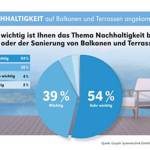 Nachhaltig bauen: Was lange nur ein Schlagwort war, wird Bauherren zunehmend wichtiger – auch auf Balkonen und Terrassen. Das zeigt eine Umfrage im Auftrag von Gutjahr. 93 Prozent der Befragten war es dabei wichtig oder sogar sehr wichtig, dass der Außenbereich möglichst „für die Ewigkeit“ ausgeführt wird. Und genau dafür steht auch Gutjahr. Das Unternehmen entwickelt bereits seit mehr als drei Jahrzehnten hierfür langlebige Lösungen. Dazu gehören seit einigen Jahren auch Verlegesysteme, die ganz ohne Mörtel auskommen. Diese lassen sich zudem problemlos noch bei herbstlichem Wetter verarbeiten.