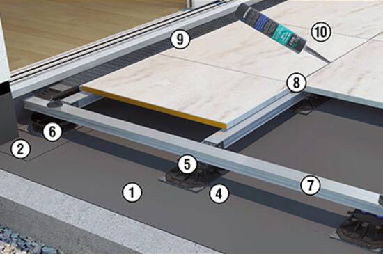 TerraMaxx® RS est une sous-construction stable en aluminium pour la pose de revêtements de terrasses et de balcons. Grâce à une technique de raccordement à vis intelligente, il n’est pas nécessaire de pré-percer. Le système peut être utilisé sur des supports cohésifs et non cohésifs par quasiment tous les temps. En raison de son poids et de sa hauteur de pose faibles, il convient également parfaitement à la rénovation.