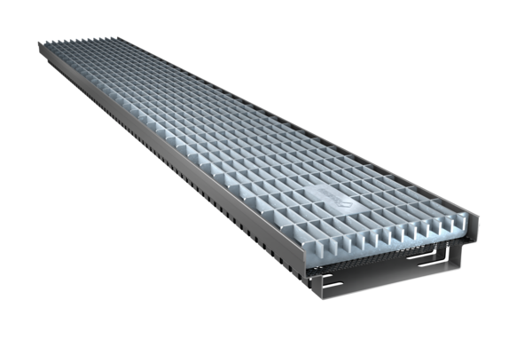 The AquaDrain® KR gutter channel is is equipped with a particularly high zinc content. It is also powder-coated after punching to protect against corrosion. -